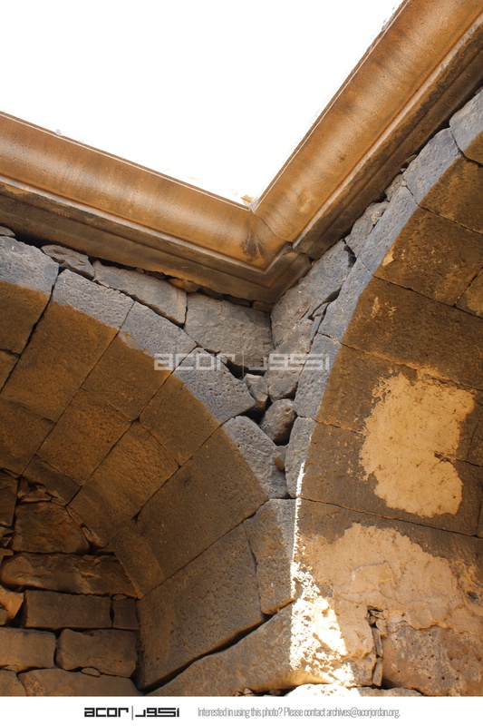 Jordan. Umm al Jimal, cruciform room in the Praetorium looking up at the ceiling moldings