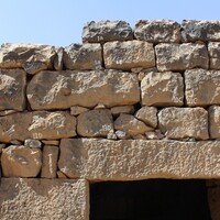 Jordan. Umm al Jimal, lintel on doorway of House XVII