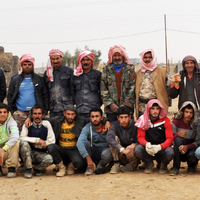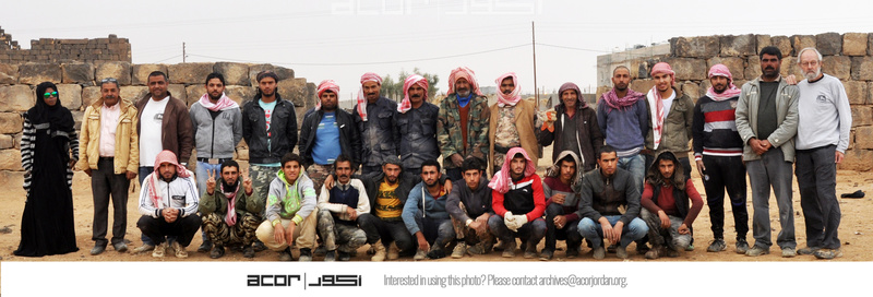 Jordan. Umm al Jimal, project team in front of Commodus Gate