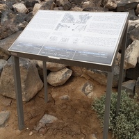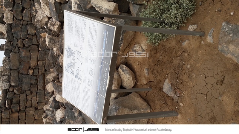 Jordan. Umm al Jimal, sign about basalt construction techniques