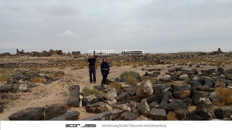 Jordan. Umm al Jimal, general view of site with ACOR director Barbara Porter and Bert de Vries of UJAP