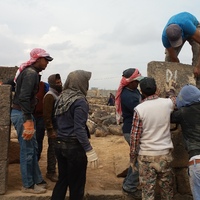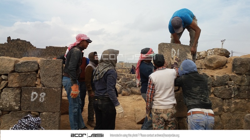 Jordan. Umm al Jimal, local workers working on the restoration of Commodus Gate