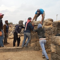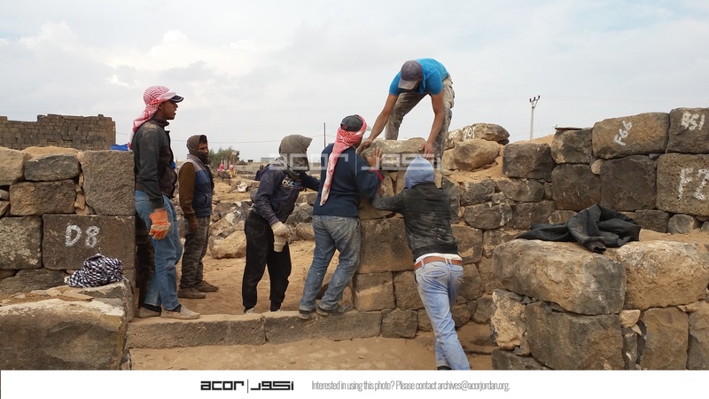 Jordan. Umm al Jimal, local workers working on the restoration of Commodus Gate