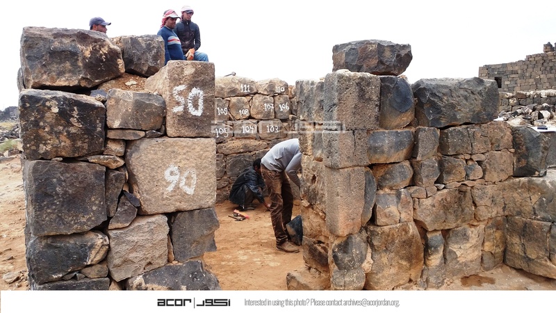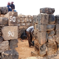 Jordan. Umm al Jimal, local workers working on the restoration of Commodus Gate