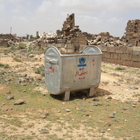 Jordan. Umm al Jimal, garbage bin, outside Praetorium