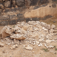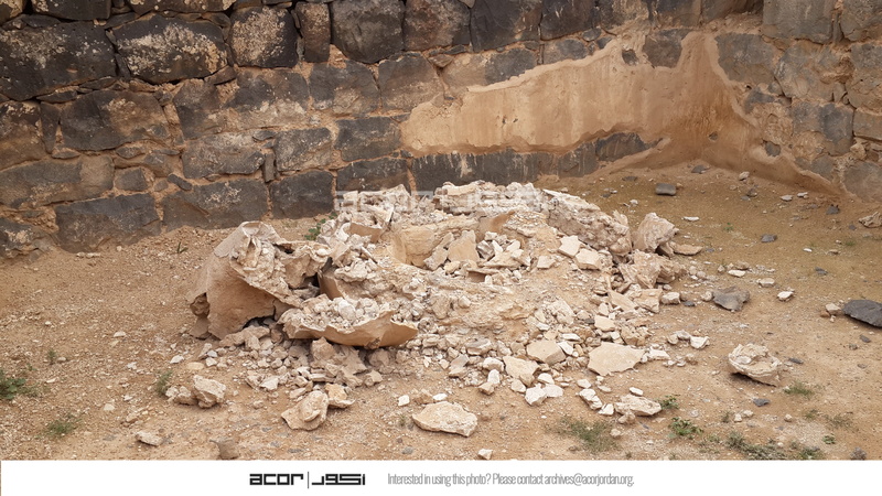 Jordan. Umm al Jimal, baptismal room built against the church on the northeast side, the photo shows the remnants of a baptismal font which was thought to have been destroyed shortly after its discovery