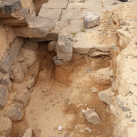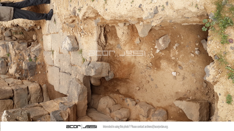 Jordan. Umm al Jimal, a trench showing the Umayyad floor in the courtyard of House XVIII and the water drain beneath it