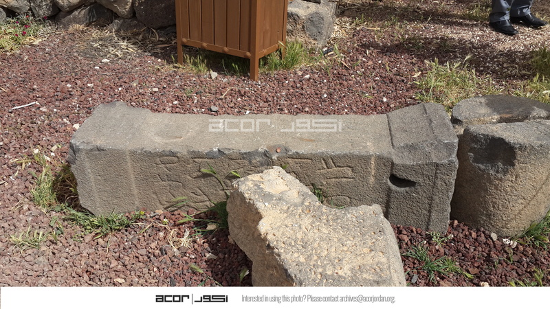 Jordan. Umm al Jimal, inscribed stone in both Greek and Nabataean, which reads, "This cult stone masikh dedicates to his god Dushara Arra", now in the Interpretive and Hospitality Center