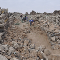 Jordan. Umm al Jimal, trail between House XVII and Roman Reservoir, photo taken before path was cleared, photo shows local workers clearing the site
