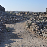 Jordan. Umm al Jimal, trail approaching House XVII, House XVIII, and Double Church, photo shows path after it was cleared