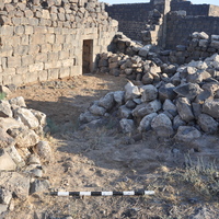 Jordan. Umm al Jimal, entry into domestic complex after the path was cleared