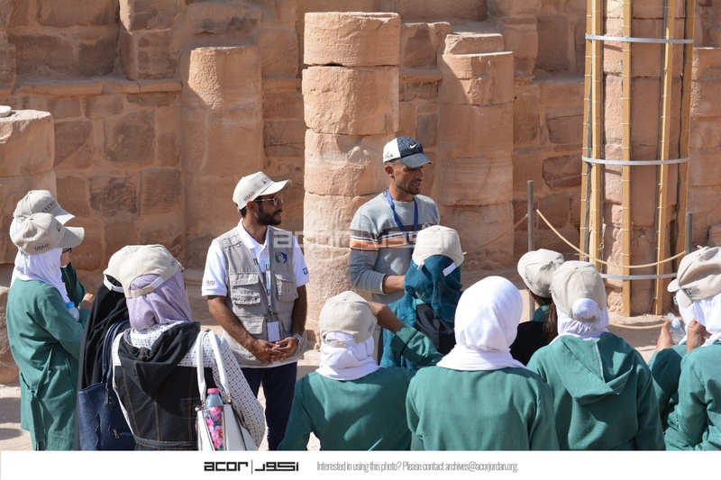 Jordan. Petra, Temple of the Winged Lions, schoolchildren take part in Experience ''Be An Archaeologist''