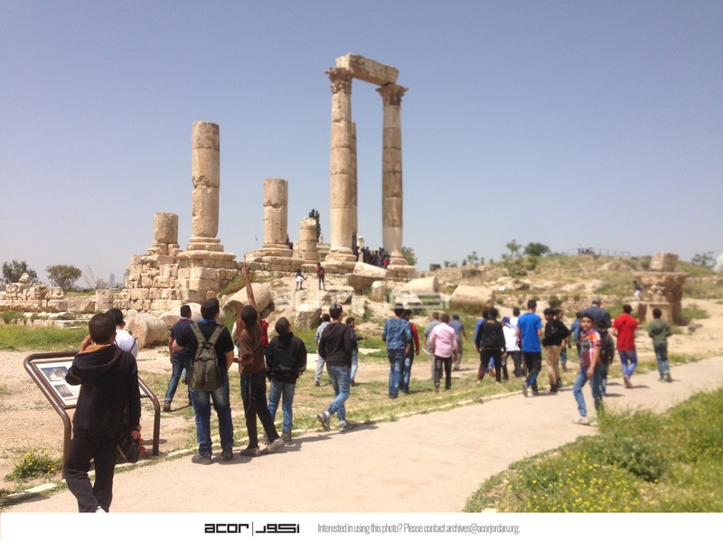 Jordan. Amman, Citadel, school group field visit as part of the Madrasati program