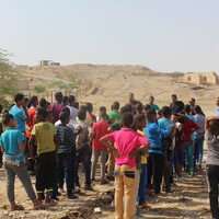Jordan. Ghawr as Safi, school group visit to the medieval sugar factory as part of Madrasati program