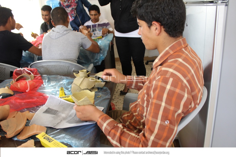Jordan. Busayra, school group archaeological site visit and pottery activity