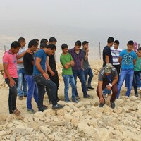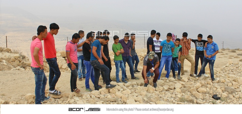 Jordan. Busayra, school group archaeological site visit and pottery activity
