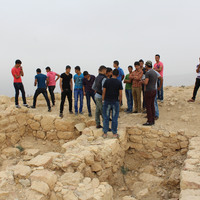 Jordan. Busayra, school group archaeological site visit and pottery activity