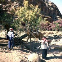 Jordan. Petra, Wadi Sabra, trip with photographer Jane Taylor, Jabal an-Nabi Harun, bedul with loaded camel