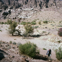 Jordan. Petra, helicopter flight with Jane Taylor down to Wadi Sabra, Bdoul guide making tea
