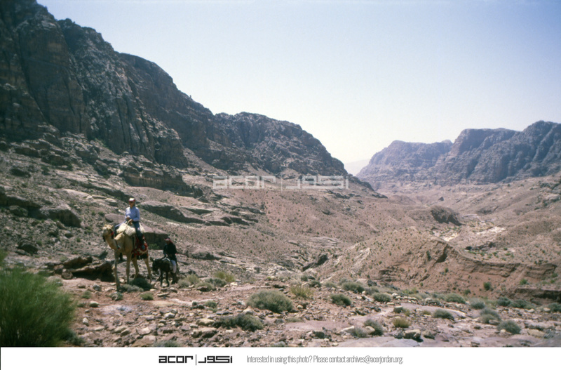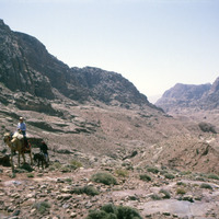 Jordan. Petra, helicopter flight with Jane Taylor down to Wadi Sabra, Jane Taylor and Bdoul guide
