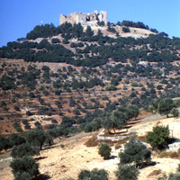 Jordan. Ajlun, Ajlun Castle. Distant view of inside to south