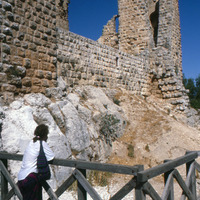 Jordan. Ajlun, Ajlun Castle. View to west of tower and walls. Pictured: Lori Phillips