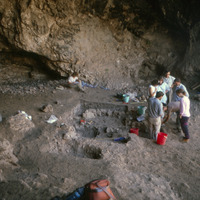 Jordan. Iraq ed-Dubb cave on south side of Wadi Yabis. View of interior of cave to west. Adele Tempest, Enzo Bellotti, Ruba Kana'an, Yacoub Oweis, unidentified female, Gaetano Palumbo, Ian Kuijt, Lori Phillips. Excavation of PPNA remains by Ian Kuijt