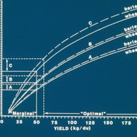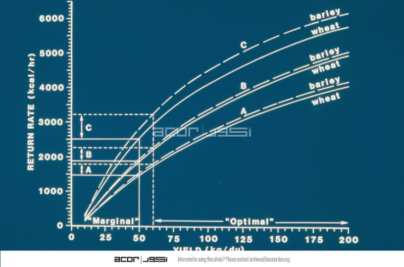 Wheat and barley cultivation energetics, return rates by yield/du [dunum] for wheat and barley cultivation given changes in technology