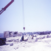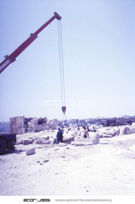 Jordan. Amman, Citadel (Jabal al-Qala'a), Temple of Hercules, moving capital of southeast column collapse