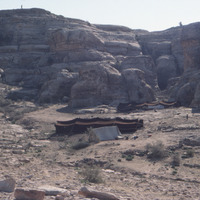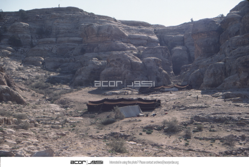 Jordan. Petra, Tur Imdai, Bedouin tent camps near edge of escarpment. Hike into Tur Imdai